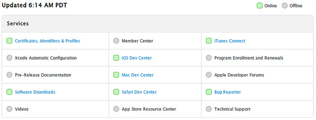 Közel egy hetes kiesés után kezd visszatérni az élet az Apple Devcenter szolgáltatásába. A vállalat folyamatosan helyezi online állapotba a szolgáltatásokat. Részletek a frissített bejelentésben.