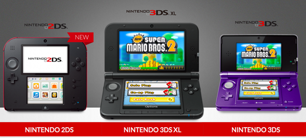 A három dimenziós óriás után elérkeztünk a Nintendo legfrissebb kézikonzoljához, a 2DS-hez. A kütyü szakított az összecsukható házzal, a lapos eszközön a két kijelző egymás alatt helyezkedik el. Az alsó itt 3,02, a felső pedig 3,53 hüvelyk méretű, és a zsanérokkal a 3D képességek is eltűntek róla. A kütyü tervezésénél az alacsony ár volt az egyik fő szempont, ezt 130 dollárra sikerült a gyártónak leszorítani. A Nintendo kétségtelenül hosszú utat járt be az első Game Boy negyed évszázaddal ezelőtti megjelenése óta: a vaskos, méretes első készüléktől eljutott az egészen apró, majd végül a még sokkal nagyobb eszközökig - van azonban ami változatlan maradt, hiszen a fiatal játékosok még mindig a hőskorból is ismert címeket gyűrik, mint a Pokémon vagy a Mario játékok valamelyike, igaz hőseik már nem a zöld LCD-n lapítják ki a gombákat.